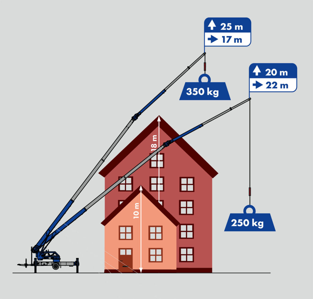 - 22 m Reichweite mit 250 kg