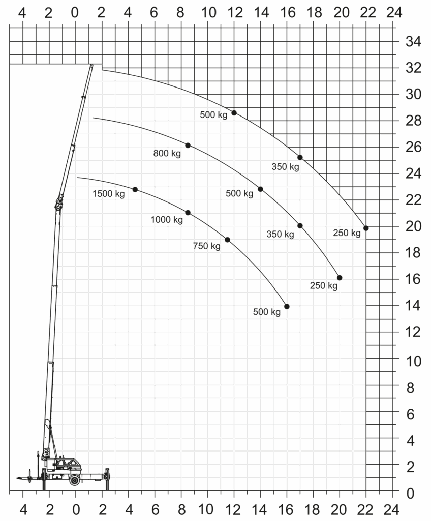 | Ausleger (1.500 kg – 800 kg) | 4,29 – 8,50 m |