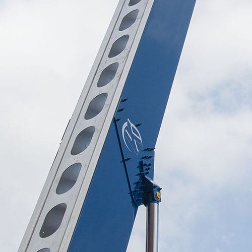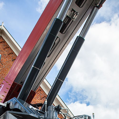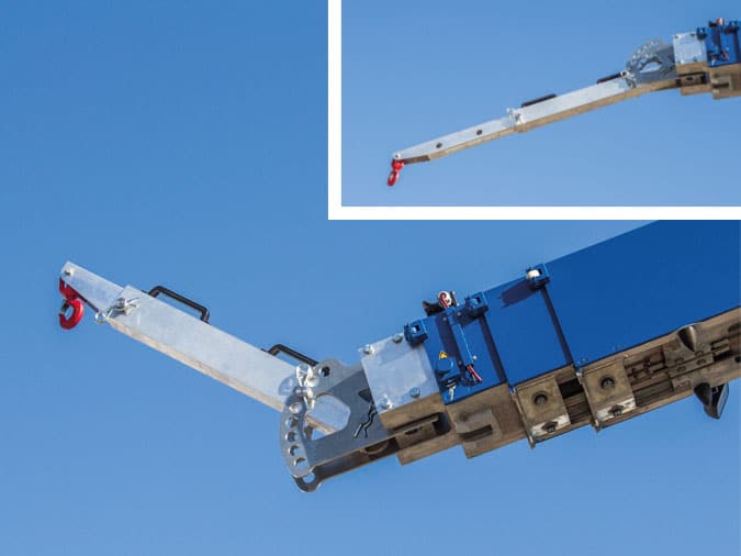 - verwindungsarmes Anheben des Auslegers dank zweier Wippzylinder