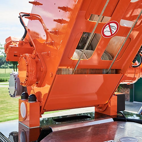 - geschützte Führung aller beweglichen elektrische und hydraulische Leitungen in oder auf dem Mast