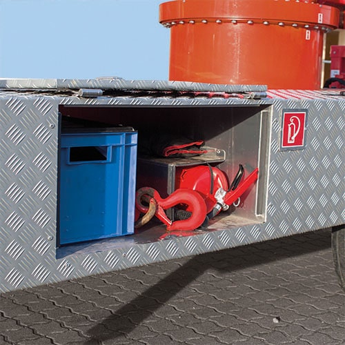 - mit 230 V-Steckdose und normgerechten Verzurrpunkten zur Personensicherung